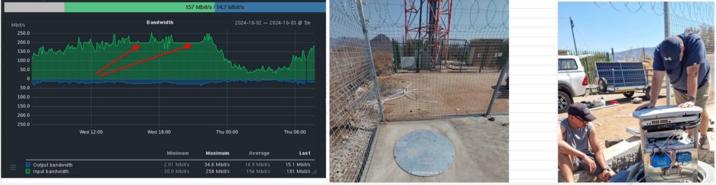 These hotspots connected to seven high sites using point-to-point (PtP) radios, which in turn were linked together via 80GHz Siklu PtP radios. One of the high sites connects directly back to Teraco via a dedicated 1Gbps fibre uplink, ensuring high-speed backhaul to the internet.